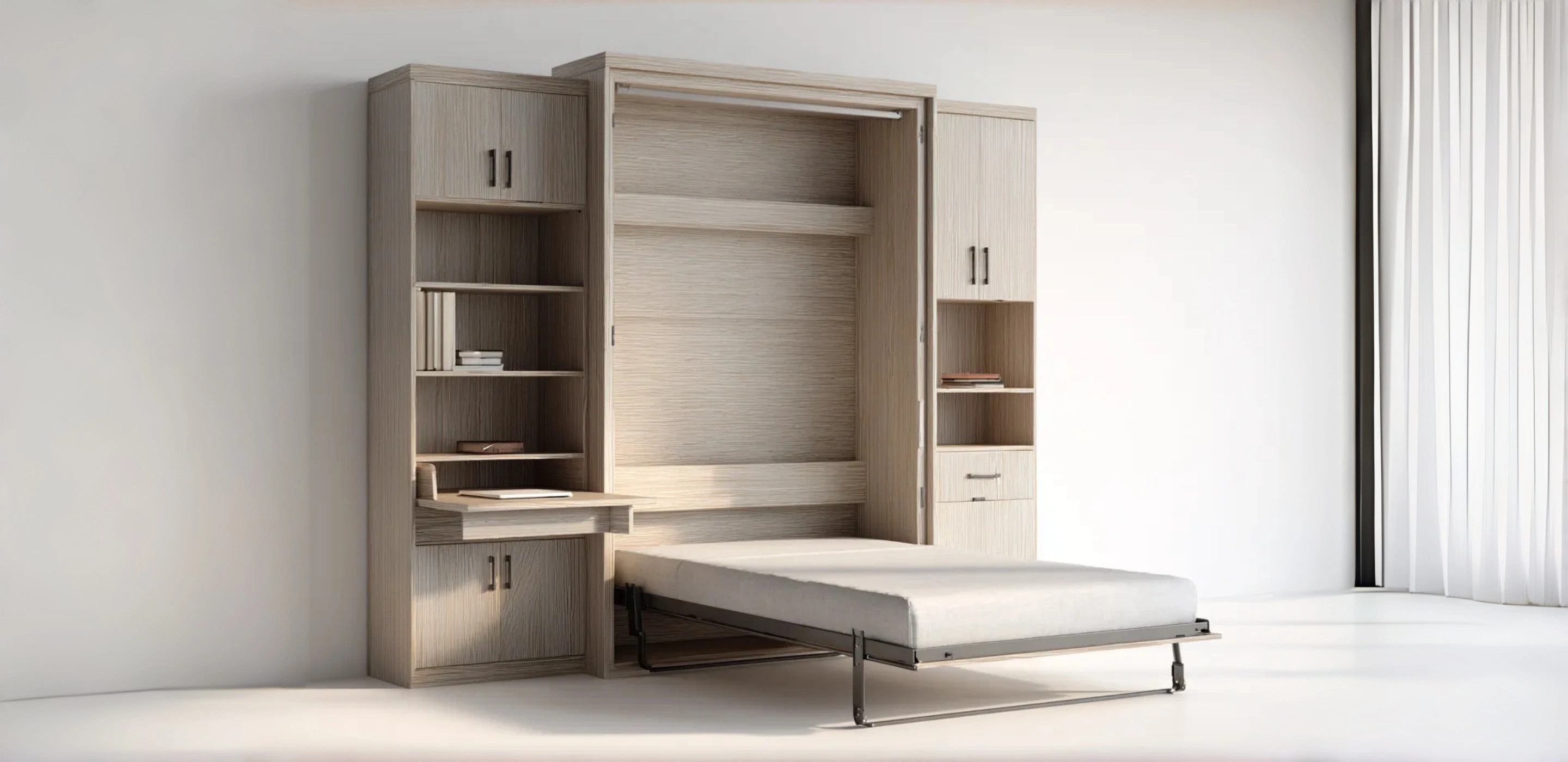 Lit escamotable bois 200x160x220 cm - chêne clair - design moderne
